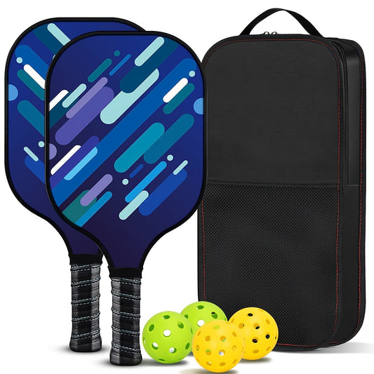 Pickleball Paddle 2 Pack, Fiberglass Pickleball Paddles with 4 Pickleballs, 1 Portable Bag Lightweight Pickleball Racket