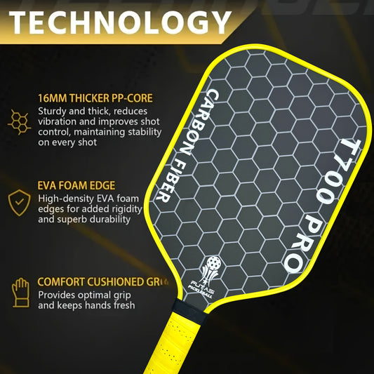 Pickleball Paddles Set Of 2, T700 Carbon Fiber Pickleball Paddles W/Carbon Abrasion Surface & 16mm Honeycomb Core for Ultimate Spin, Power & Control, Ideal for Men, Women, Novice, Intermediate & All Levels