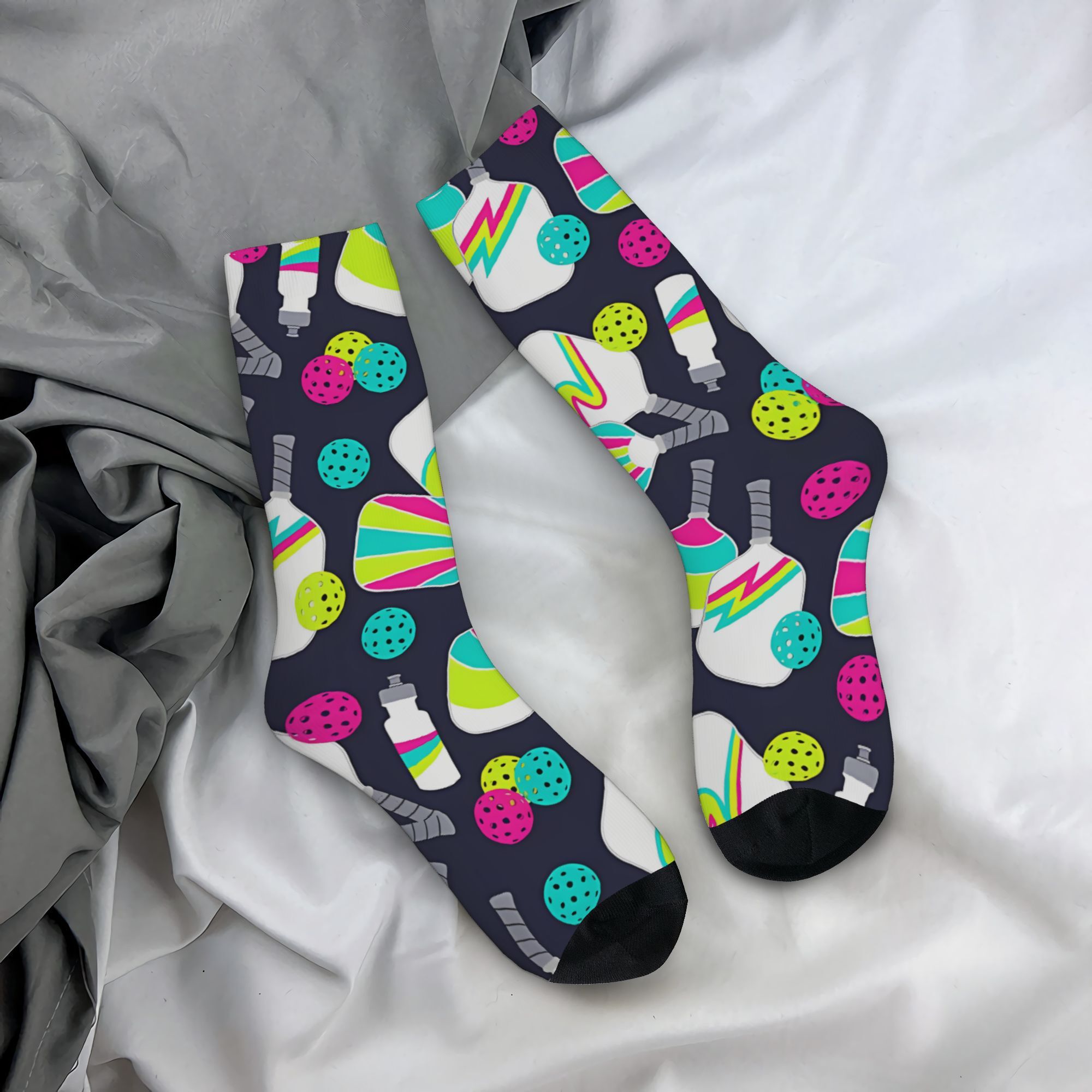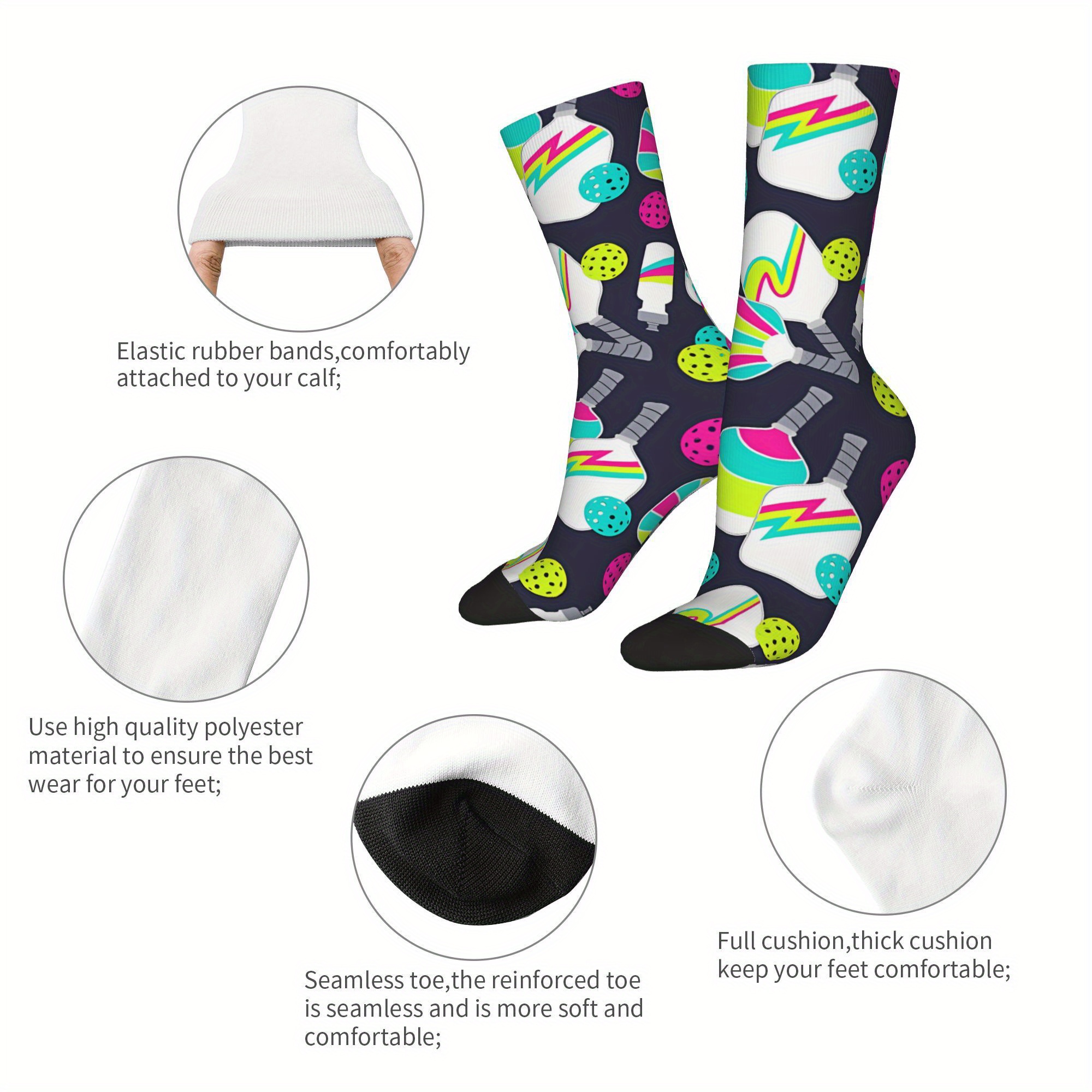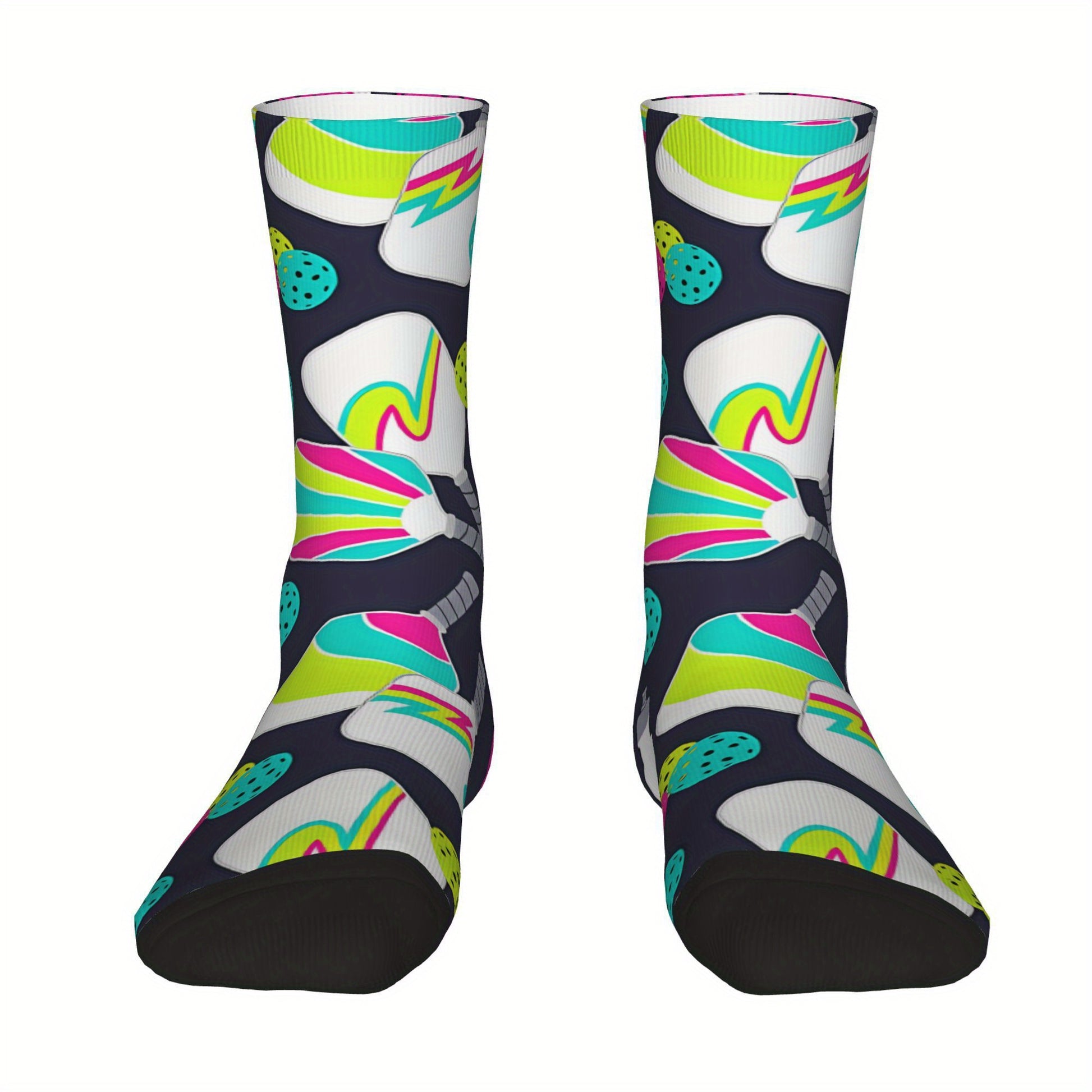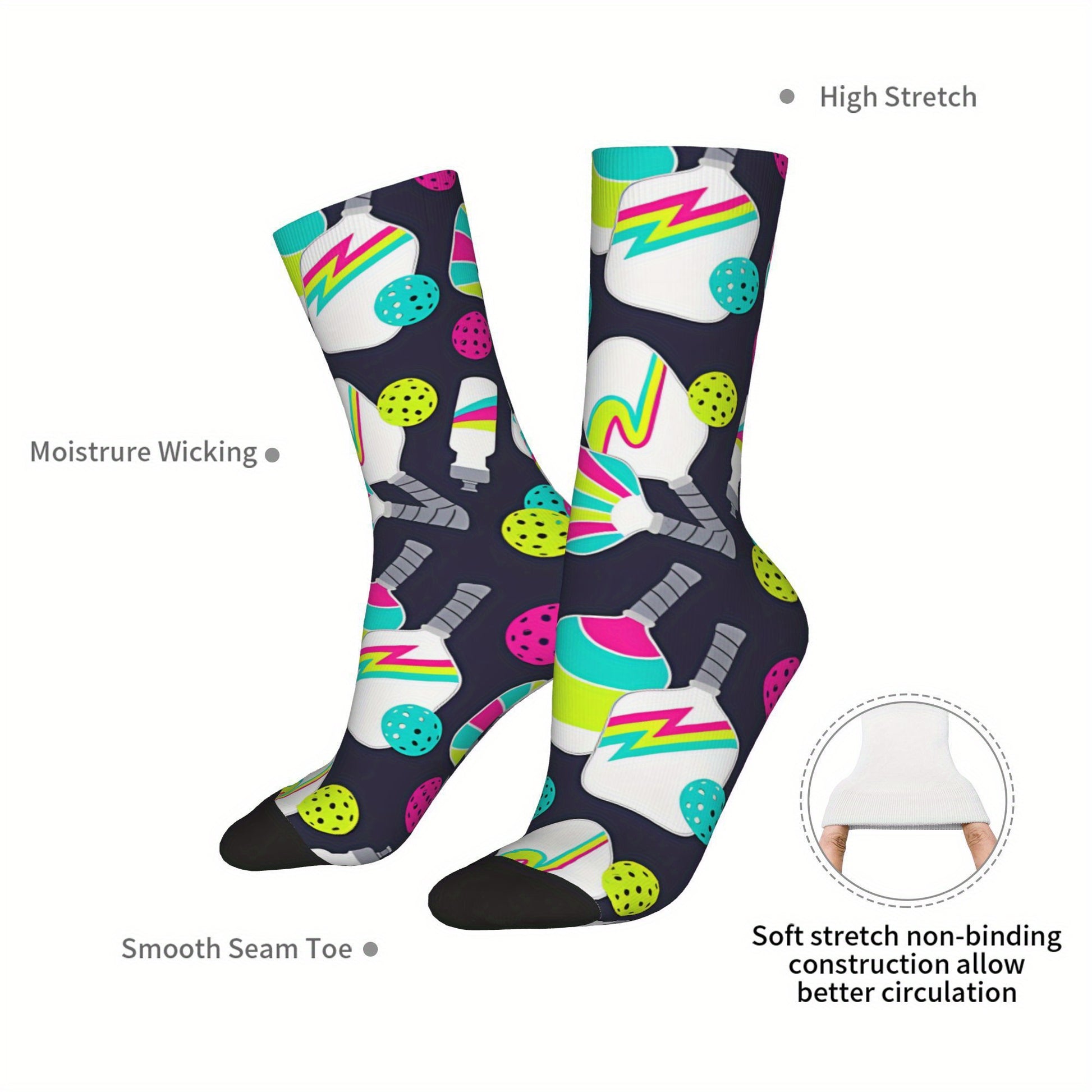 1 Pair Unisex Compression Socks - Hip Hop Vintage Pickleball Party Design, Seamless Crew Socks with Random Printed Novelty Patterns, Funny Street Style for Sports & Casual Wear