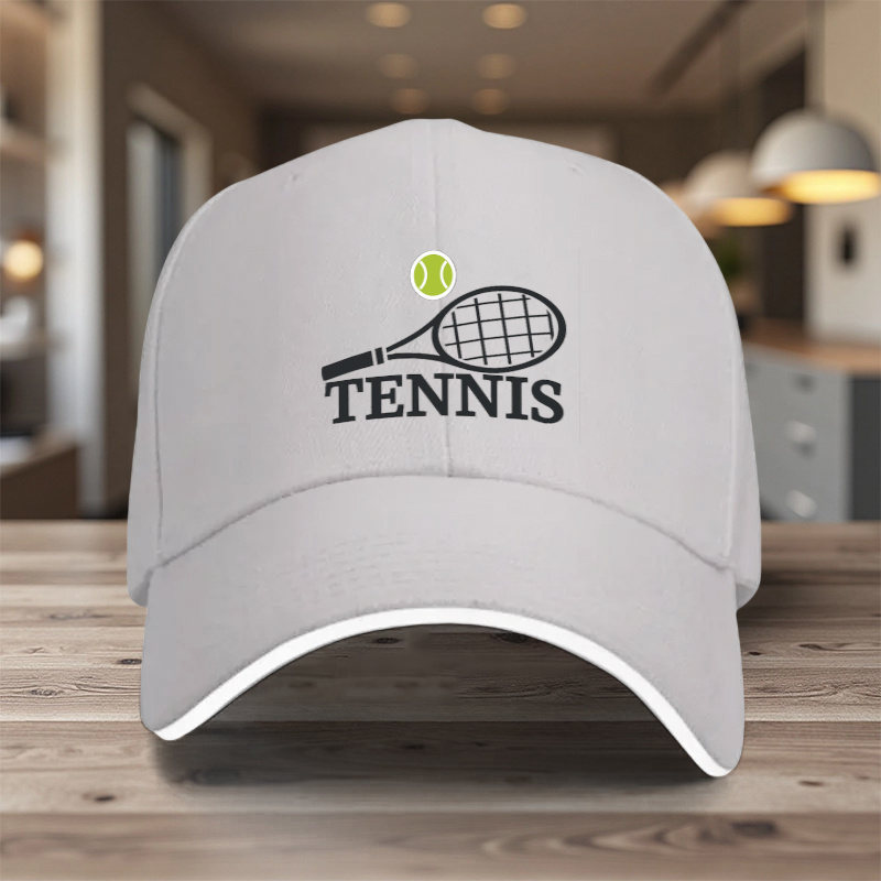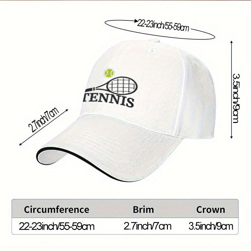 1pc, Adjustable Sandwich Baseball Cap with "Tennis" Print, Lightweight Printed Women's Hat, "Tennis Match" Men's Sun Hat, Ideal Gift for Sports, Parties, and Birthdays