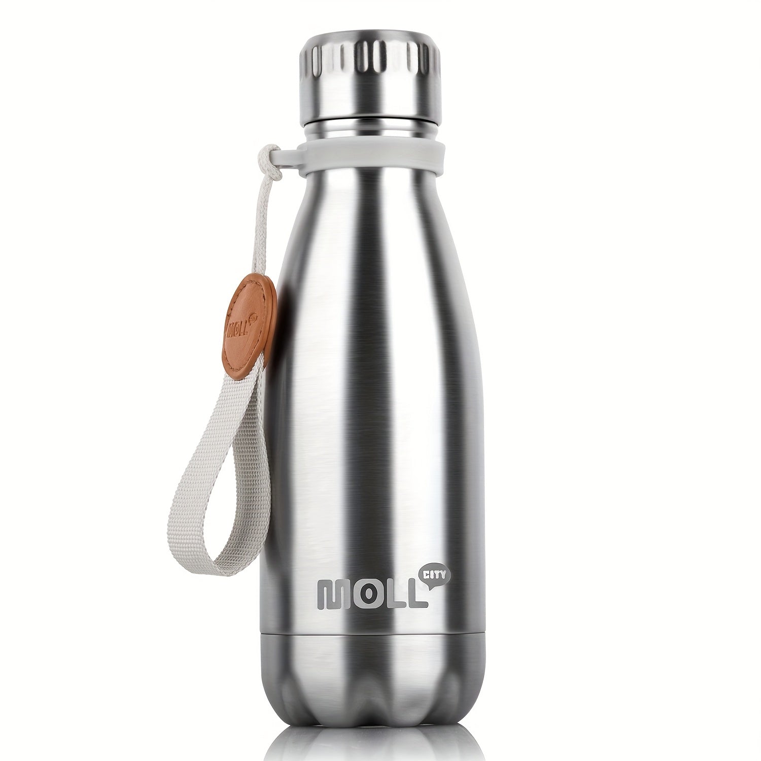 1pc Mollcity 9oz/266ml Stainless Steel Water Bottle - Vacuum Insulated, Leak-Proof, Double-Wall Insulated with Carry Strap, 24H Cold & 12H Hot, Lightweight & Durable for School, Sports, Travel, Outdoor, Gym