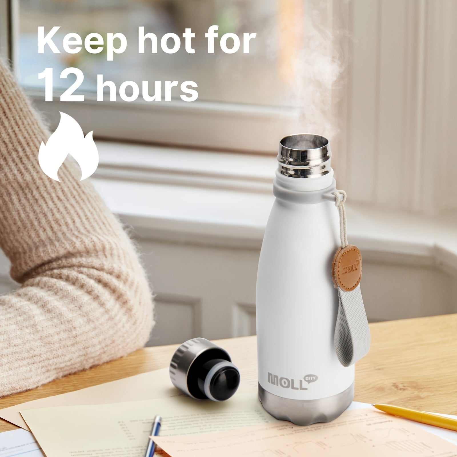 Mollcity thicker double-wall vacuum insulation technology combined with classic cola shape water bottle with small mouth can keep your drinks i cold for 24 hours or piping hot for 12 hours, keep your favorite beverages at the most suitable temperature all day until the last bite. A functional drink ware option for both winter and summer
