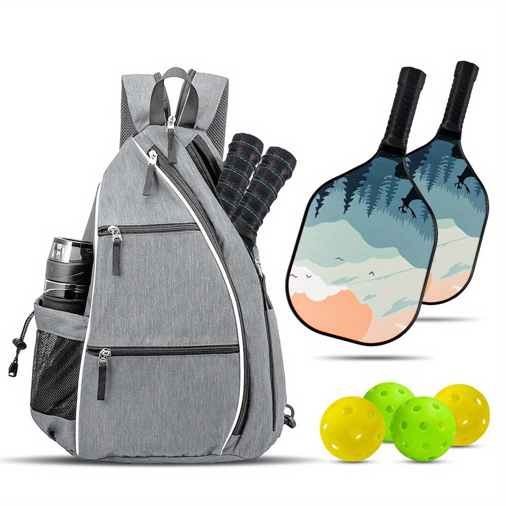 Product Characteristics: --Versatile Crossbody Backpack: Our bags are specifically crafted to accommodate tennis, squash, pickleball, badminton, and paddleball rackets, making them ideal for both everyday and outdoor activities. They also serve as excellent gifts for pickleball and tennis enthusiasts, suitable for both men and women. --Ergonomic Tennis Backpack: Weighing just 1 lb, this crossbody sports backpack provides ease of use without added weight. The airmesh padding ensures comfort for your back and shoulders.
