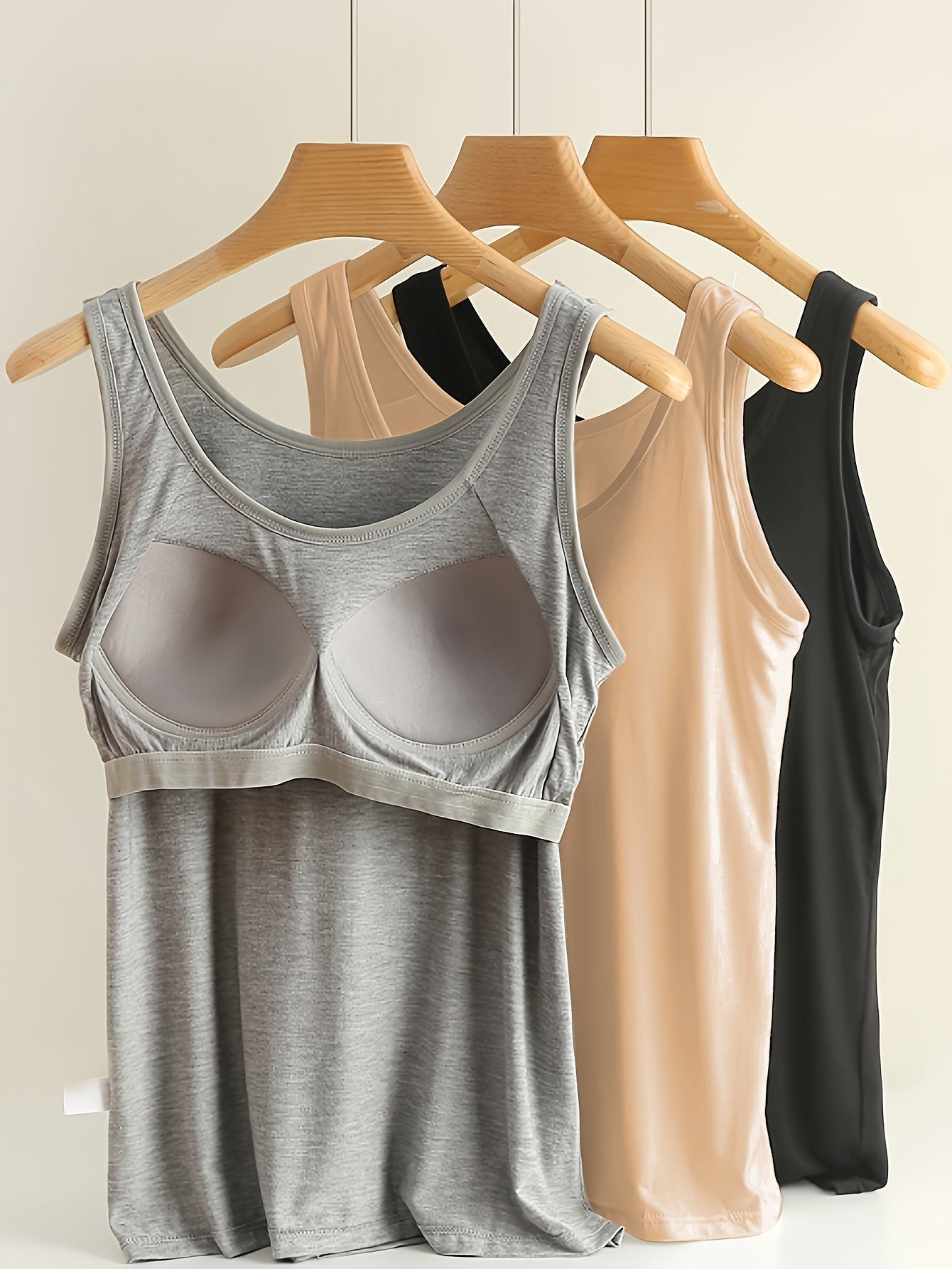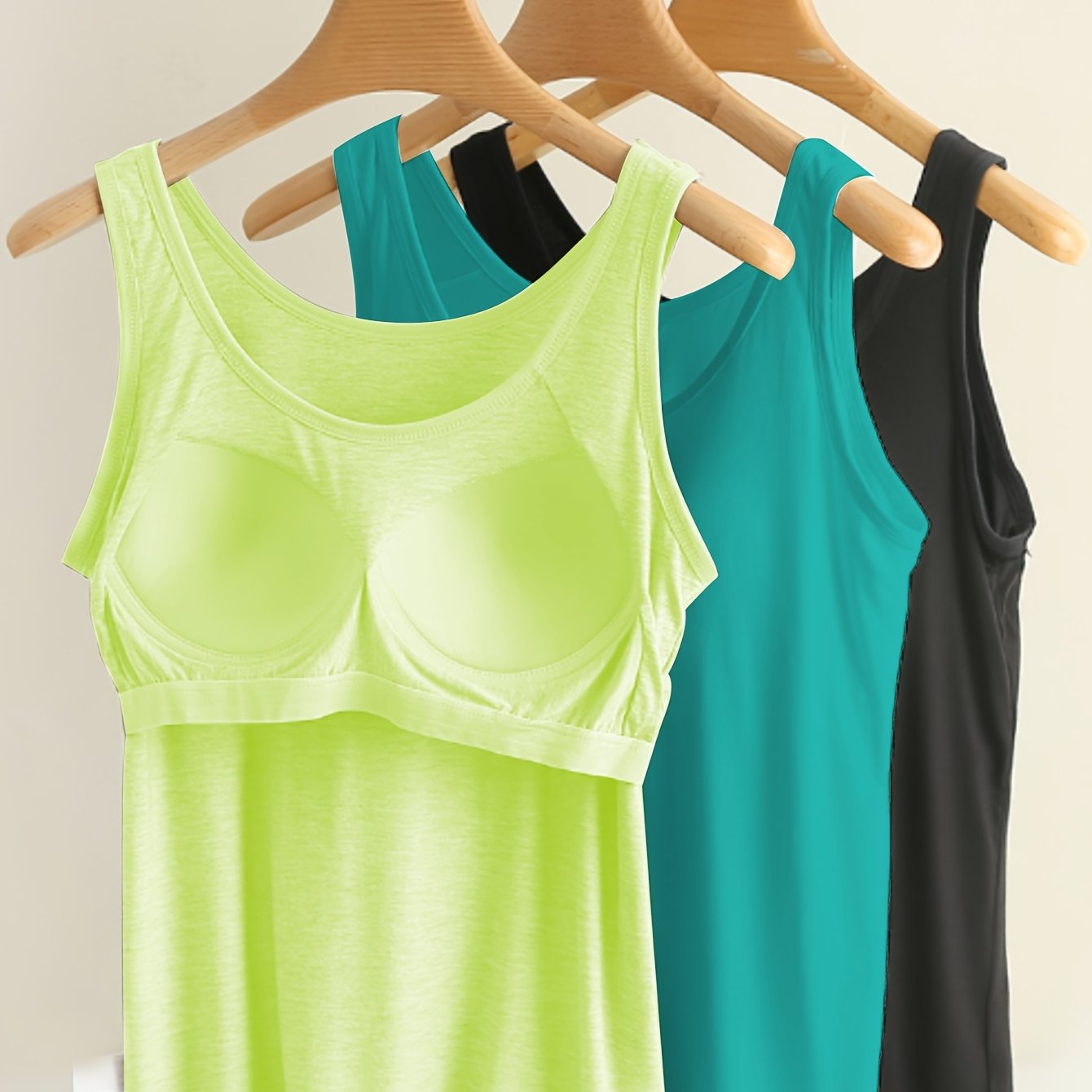 3pcs Set Women's Comfortable Wide Strap Sports Tank Tops with Built-in Pads, No Bra Needed, Simple and Fashionable, Can Be Worn as Innerwear or Outerwear