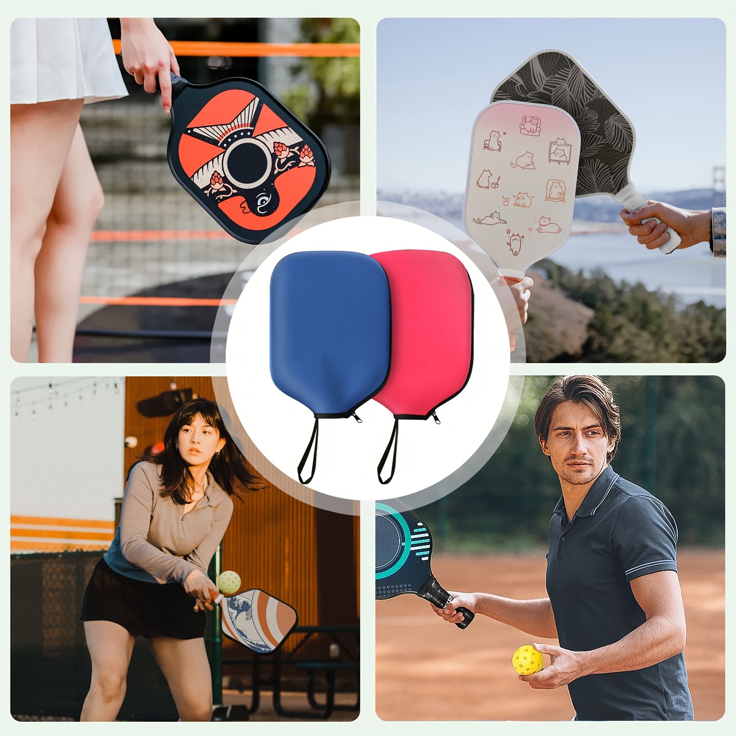 A Pickleball Paddle Cover, Durable Neoprene Paddle Cover Fits Universal 8.46 X 11.2 Inch Zippered Paddle Cover Paddle Storage Bag, Suitable for USAPA Standard Pickleball Paddles