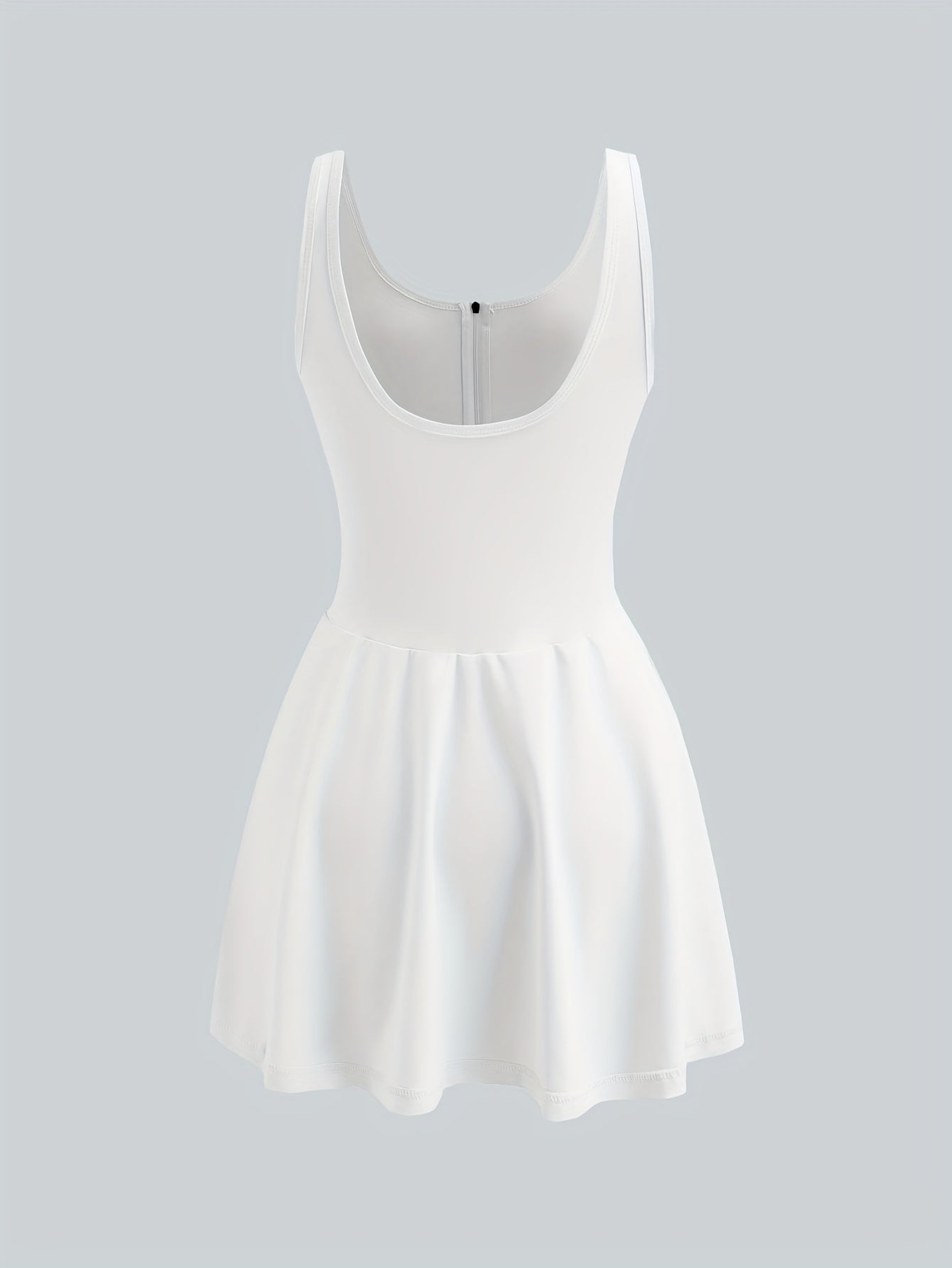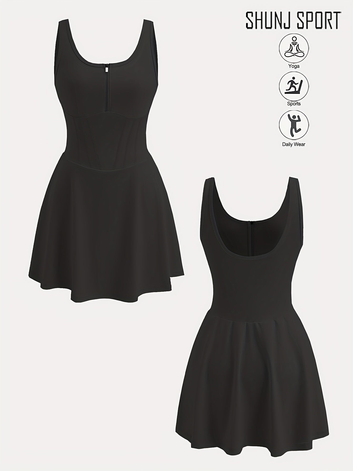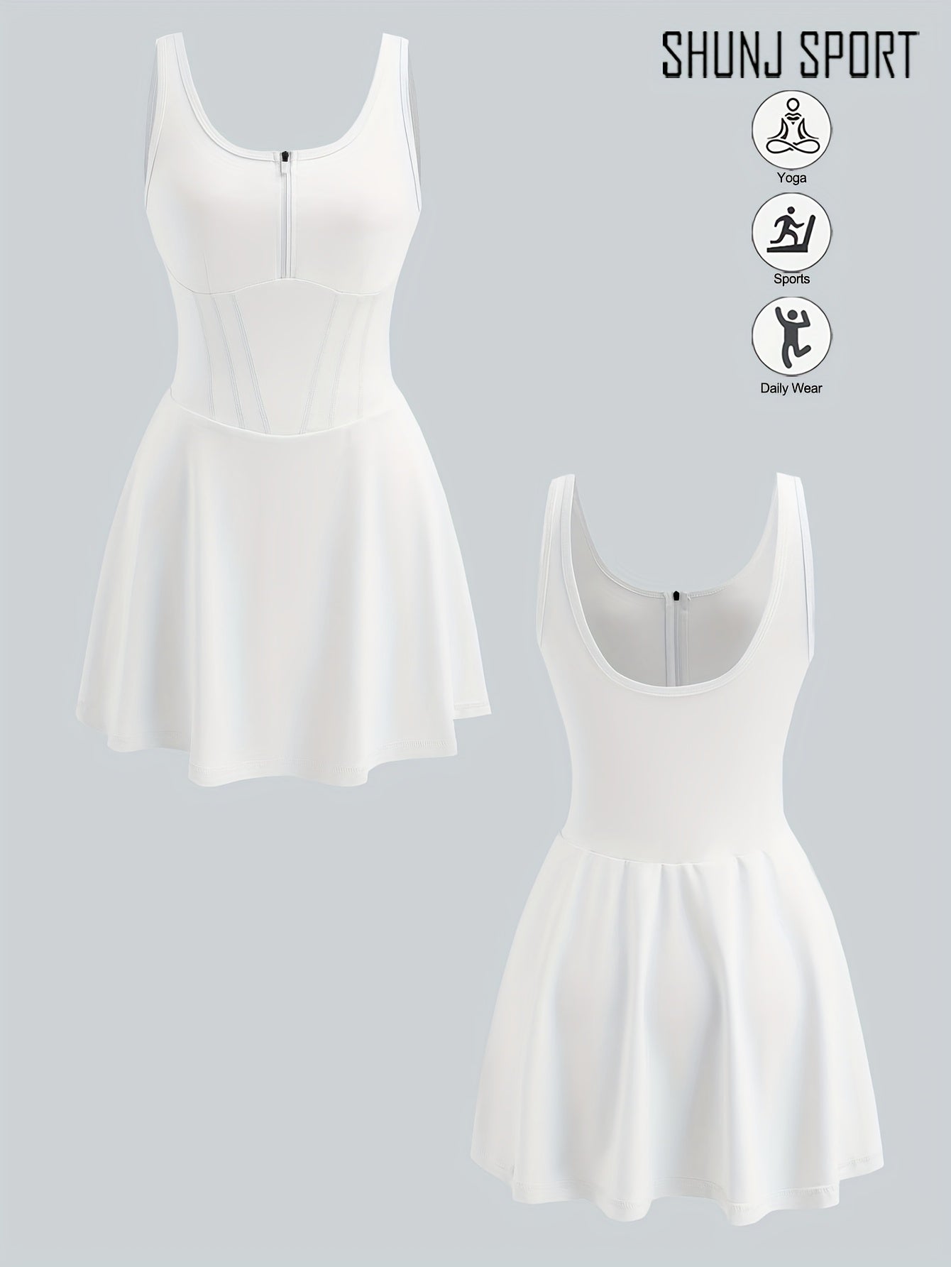 Women's Anti-See-Through Base Layer Sports Dress, New Summer Outdoor Running Fitness Tennis Skirt, Slim-Fit Women's Backless Spring/Summer Tennis/Badminton Fitness Anti-See-Through Zippered Yoga Dress, Pink Side Pocket 2-in-1